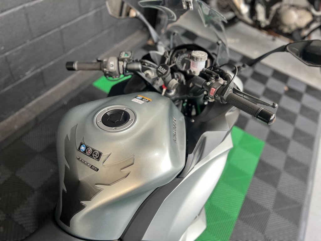 This silver 2018 Kawasaki Z1000SX has only 7,865 miles on the clock and comes with two keys. It has had three previous owners and includes an Oxford trickle charger for the battery, a USB power socket, and additional Denali lights for both the front and rear. It also features mirror arm extenders and a RAM phone mount. The bike is available for collection from our showroom or can be delivered anywhere on the UK mainland.