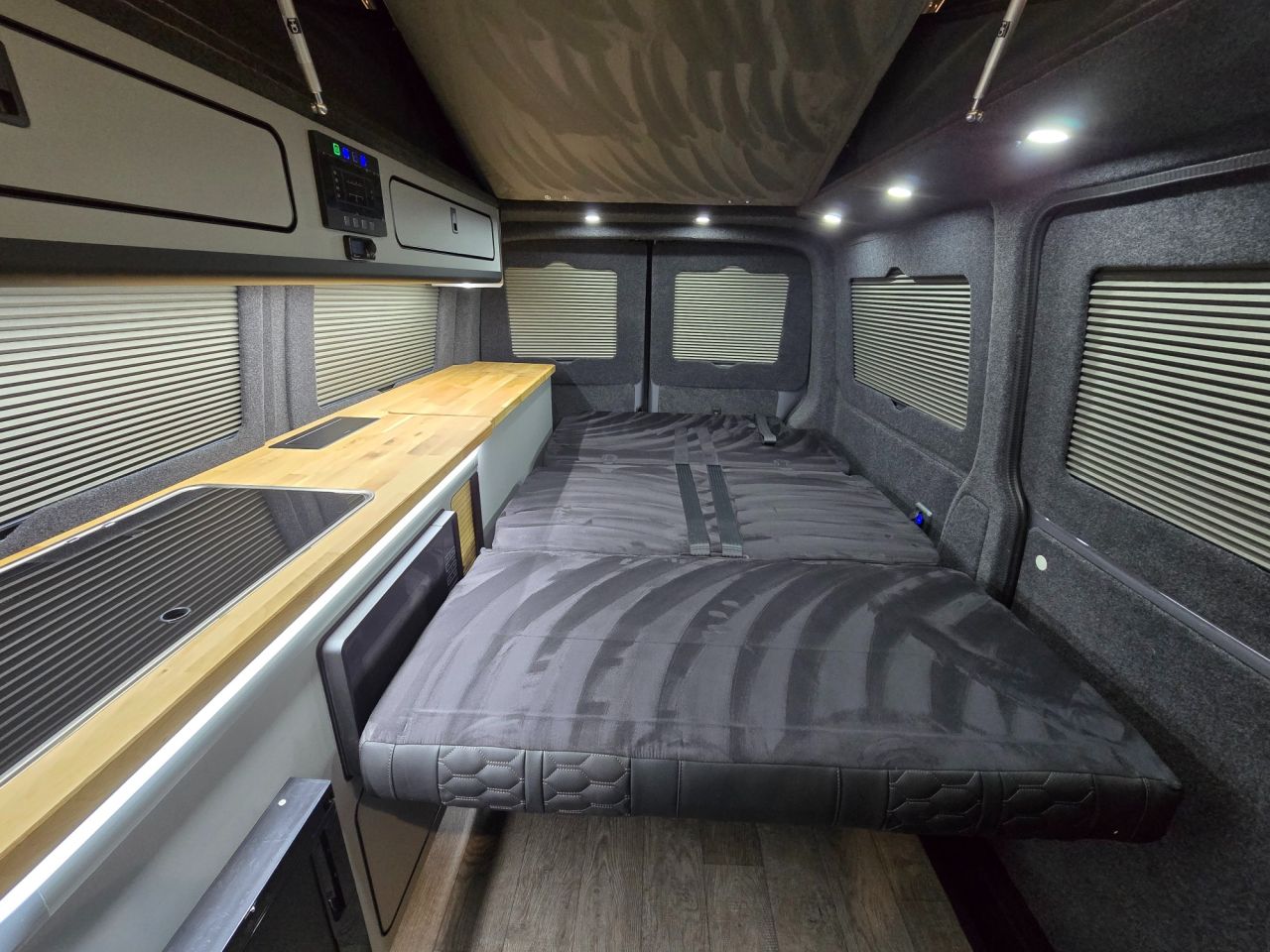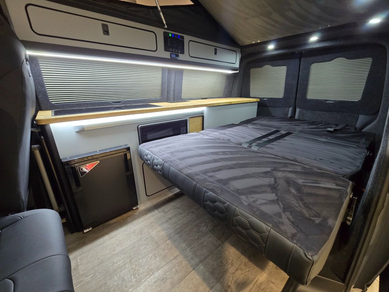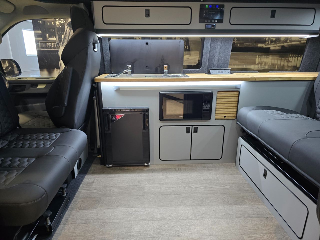 The Executive is our flagship VW Transporter campervan conversion — a masterclass in de-sign, craftsmanship, and innovation. Originally created six years ago by Lee for his own per-sonal use, this layout quickly captured attention. When customers saw the van in person, de-mand was immediate, prompting us to make it available for general sale. Lee returned to the fac-tory and worked closely with Gary, our Head of Build, meticulously refining every element to achieve the exceptional standard you see today. Over the years, countless subtle enhancements have perfected this design, resulting in a conversion that stands as the benchmark for others to follow. While many have tried to replicate it, imitations never match the original. The Executive re-mains the definitive expression of luxury, functionality, and heritage in campervan design.